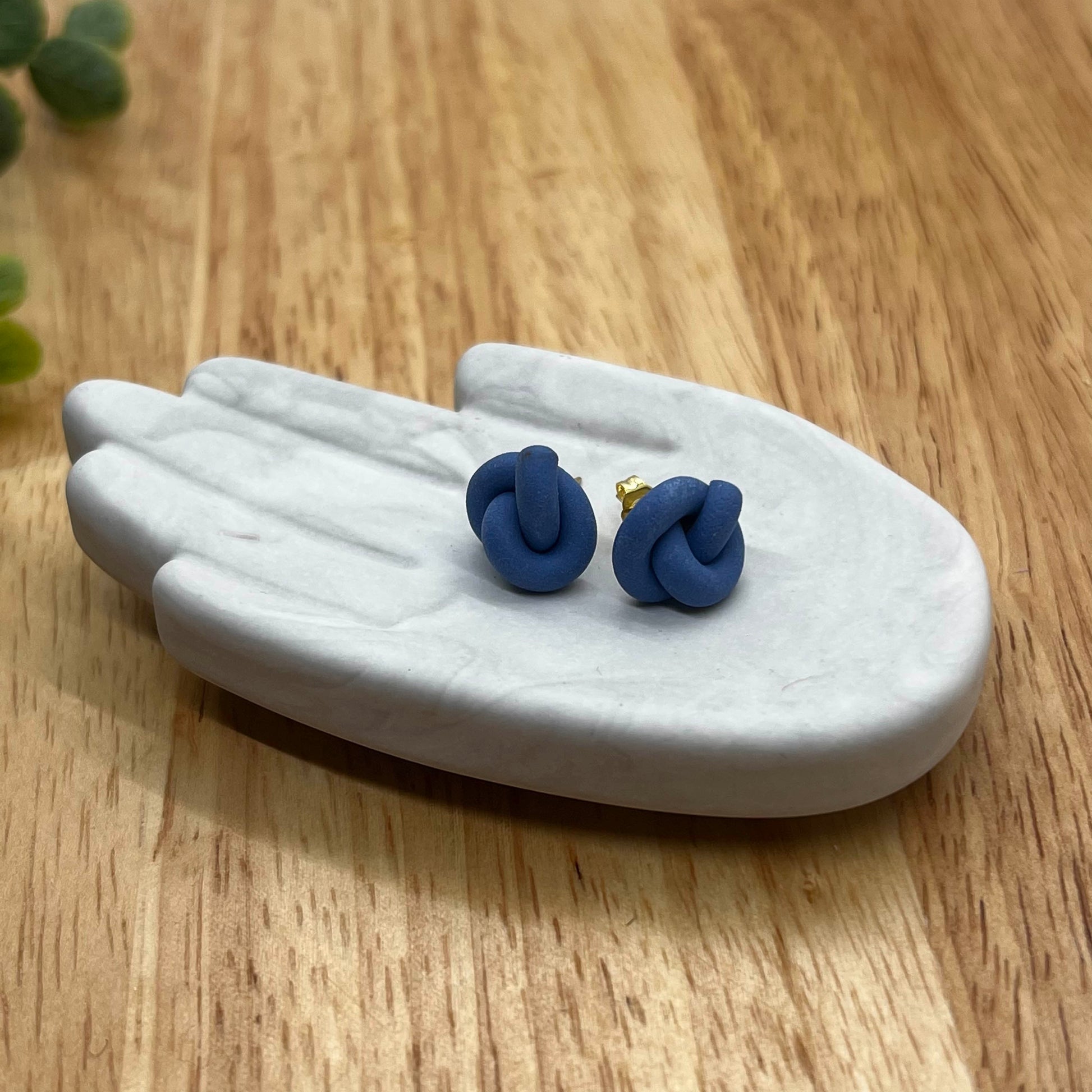 Earring studs tied into knots. Lightweight polymer clay earrings handmade in Austin, TX. No two designs are the same as they are individually made by hand.