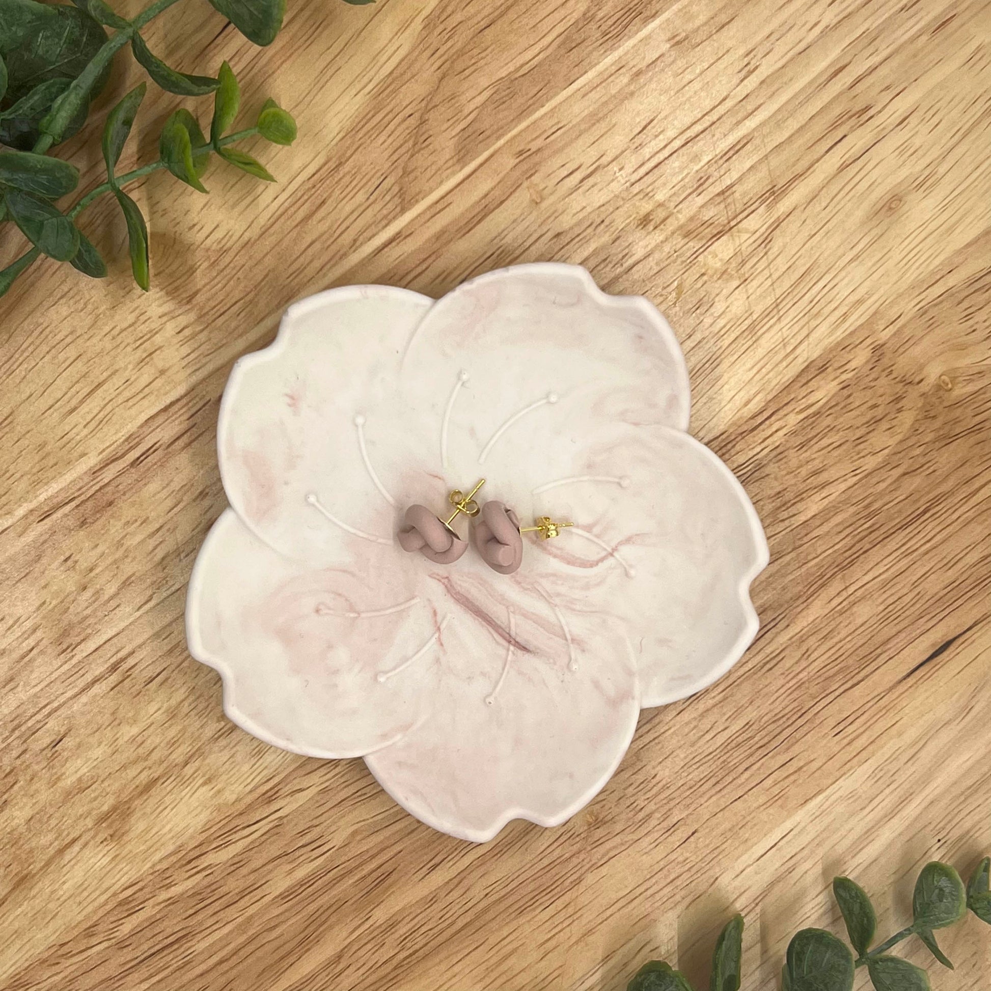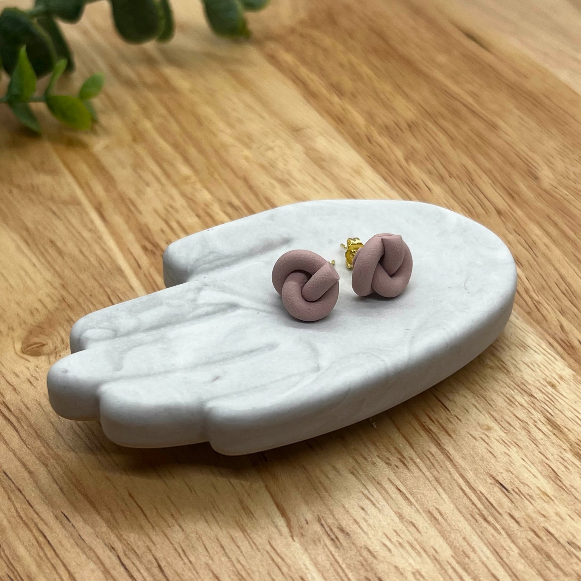 Earring studs tied into knots. Lightweight polymer clay earrings handmade in Austin, TX. No two designs are the same as they are individually made by hand.